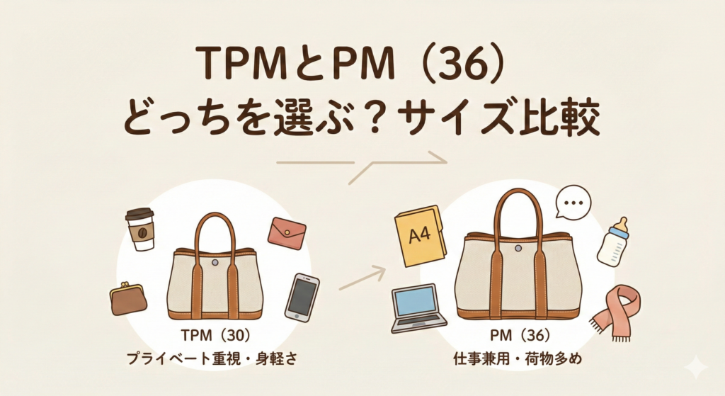 「大は小を兼ねる」と言いますが、エルメスのバッグに関しては一概にそうとは言えません。TPMとPM、それぞれのサイズには明確な得意分野があります。