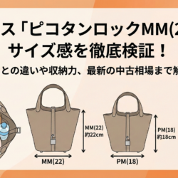 そこで本記事では、エルメス専門店やブランドリユース店で数多くのバッグを見てきた視点から、ガーデンパーティTPMの魅力を徹底的に深掘りします。具体的な収納力の検証から、PMサイズとの比較、素材の選び方、そして昨今の定価事情や賢い購入方法まで、余すことなく解説していきます。